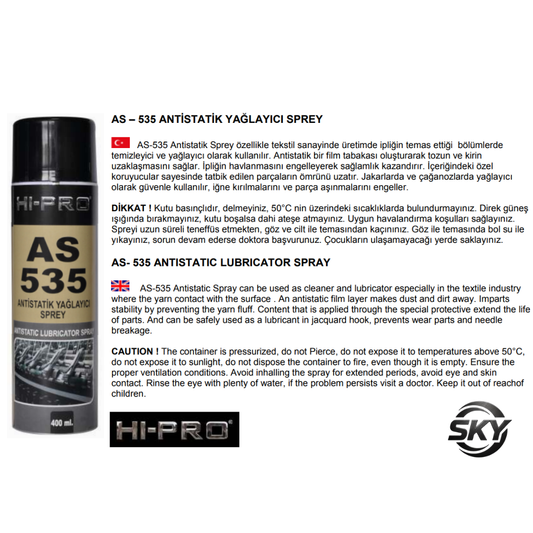 AS-535 Antistatik Yağlayıcı Sprey 400 ml.