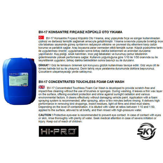 BV-17 Konsantre Fırçasız Köpüklü Oto Yıkama 20 Kg.